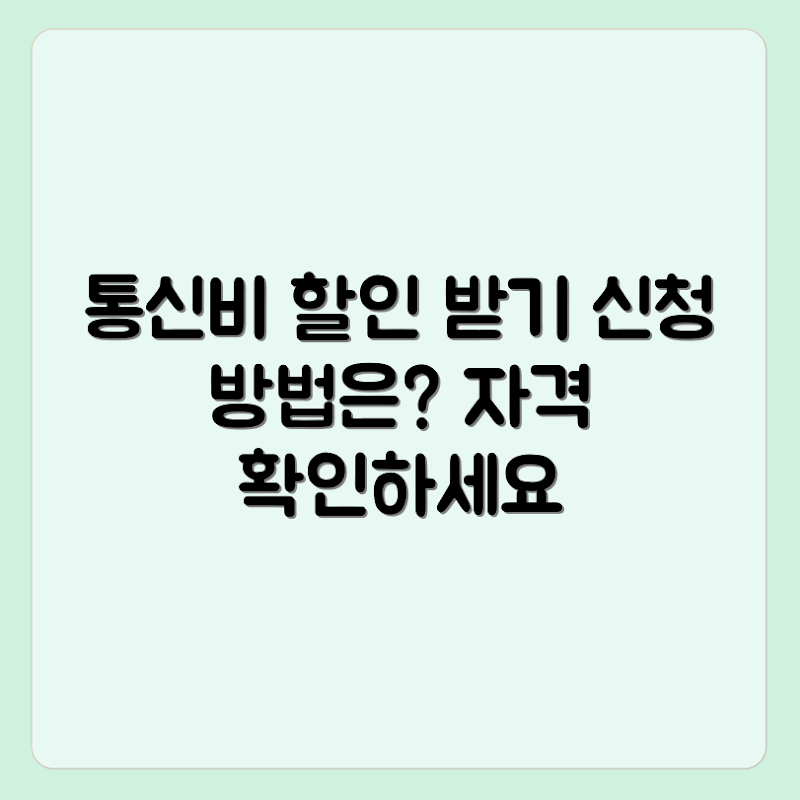 Q: 저소득층 통신비 할인 제도의 신청 자격은 무엇인가요?A: 저소득층 통신비 할인 제도의 신청 자격은 가구 소득이 기준 중위소득 50% 이하인 가정이며, 소득 증빙을 위한 서류를 제출해야 합니다.