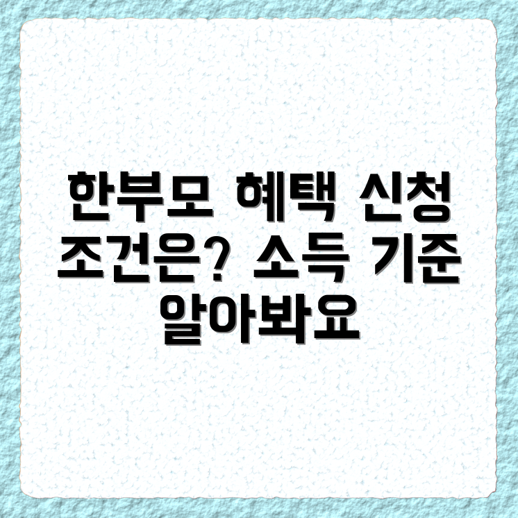 Q: 한부모가정 복지혜택을 신청하려면 어떤 조건이 필요한가요?A: 한부모가정 복지혜택 신청을 위해서는 법정 한부모가정으로 등록되어 있어야 하며, 가족의 소득이 일정 기준 이하일 경우 자격을 가집니다. 이 외에도 자녀의 연령, 부양가족 여부 등의 조건이 있을 수 있습니다.